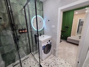 - современная душевая кабина с хорошим напором воды