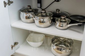 - Полностью укомплектованная кухня индукционная плита, духовка, чайник, микроволновая печь, холодильник, посуда и столовые приборы, фильтр-кувшин.