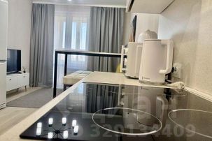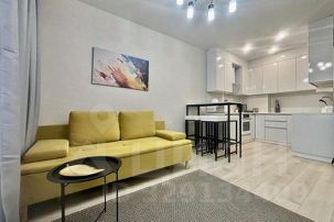 Большая кухня-гостиная с двухспальным диваном.