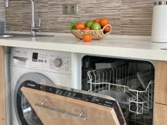 Вся необходимая техника: стиральная машина, холодильник, плита, духовка, микроволновка позволяют комфортно проживать в этой квартире.