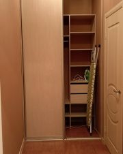 Вместительный шкаф купе для одежды в прихожей, двуспальная кровать, диван, шкаф и журнальный стол в зале, кухня с мебелью и техникой, есть холодильник, плита, вытяжка, чайник, базовый набор посуды и столовые приборы, так же стиральная машина, утюг, гладильная доска, сушилка, постельное белье, подушки, одеяло.