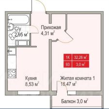 Квартира общей площадью 35,2 кв.метра, включая балкон.