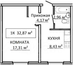 Квартира общей площадью 33 кв. метра, расположена на 2-ом этаже 10-ти этажного панельного дома 2017 года постройки.