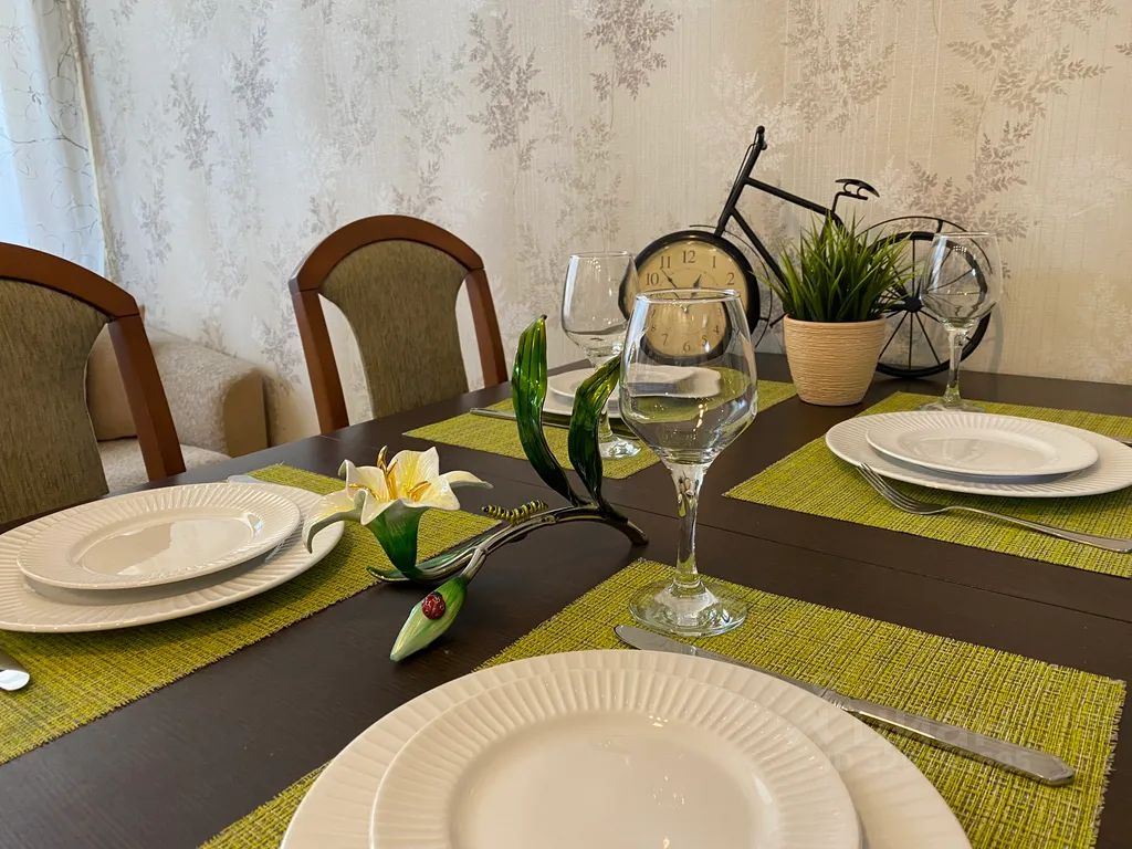 Уютная, тёплая и тихая квартира. Две большие изолированные спальни, где могут разместиться до 8 человек, просторная кухня с большим обеденным столом и необходимой посудой, две лоджии, раздельный санузел.