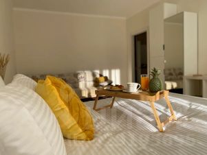 Три полноценные кровати с новыми удобными ортопедическими матрасами, кипенно-белое сатиновое постельное бельё помогут выспаться с удовольствием.