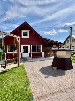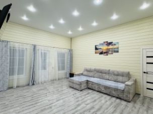 Коттедж Шале: 1-этажный, 160кв.м (брус), на участке 12 сот. Расположен на отдельной территории, оснащен парковкой на 3 автомобиля, крытым мангалом и большой меблированной верандой. В доме расположены гостиный зал с большим раскладным диваном, кухня со всем необходимым, 4 спальные комнаты, 2 санузла, в одном из них ванная. Несомненно всем будет комфортно и уютно, особенно семьям с маленькими детьми, так как полы в доме с подогревом.