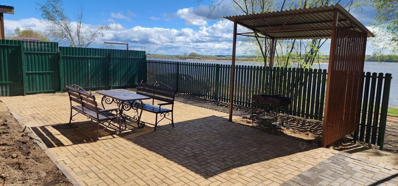 На территории располагается терраса, банный чан с видом на Волгу, мангал (с решёткой и шампурами), батут для детей, крытая парковка.
