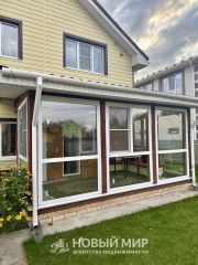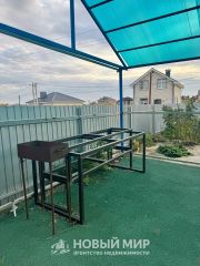Гараж с откатными воротами, парковочное место, зона с мангалом под навесом, застекленная веранда, теплица, плодово-ягодные насаждения.