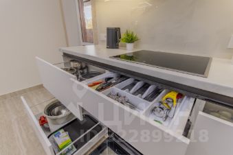 На кухне есть всё для кулинарных шедевров — духовой шкаф, микроволновка, посудомойка, большая посуда, чай, кофе и даже кофемашина. Просторный холодильник вместит любые запасы.