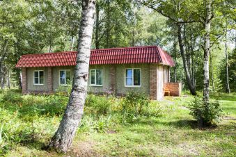 Небольшой коттедж из трех комнат и кухни с видом на озеро и лес.
