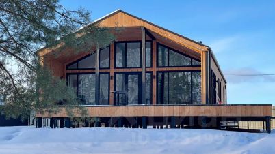 Теплый просторный уютный загородный дом барнхаус с сауной с видом на лес и озеро
