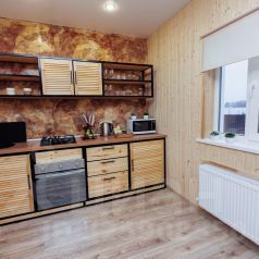 Дом оборудован всем необходимым для комфортного проживания. На первом этаже санузел с душевой кабиной, просторная кухня-гостиная и спальня с удобным диваном. На втором этаже три спальни: две с двуспальными кроватями, одна с односпальной кроватью и санузел с ванной. Также есть выход на балкон.