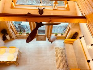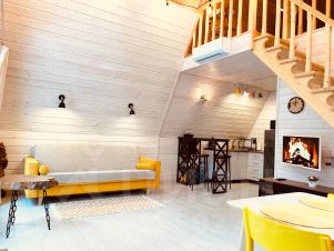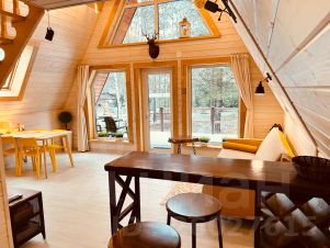 Внимание! Максимально размещаем 2 взрослых и 2 детей, в наличии двуспальная кровать на 2 этаже и раскладной 2- местный диван внизу. Заселение с животными по договорённости. Сауна безлимит включена в стоимость.