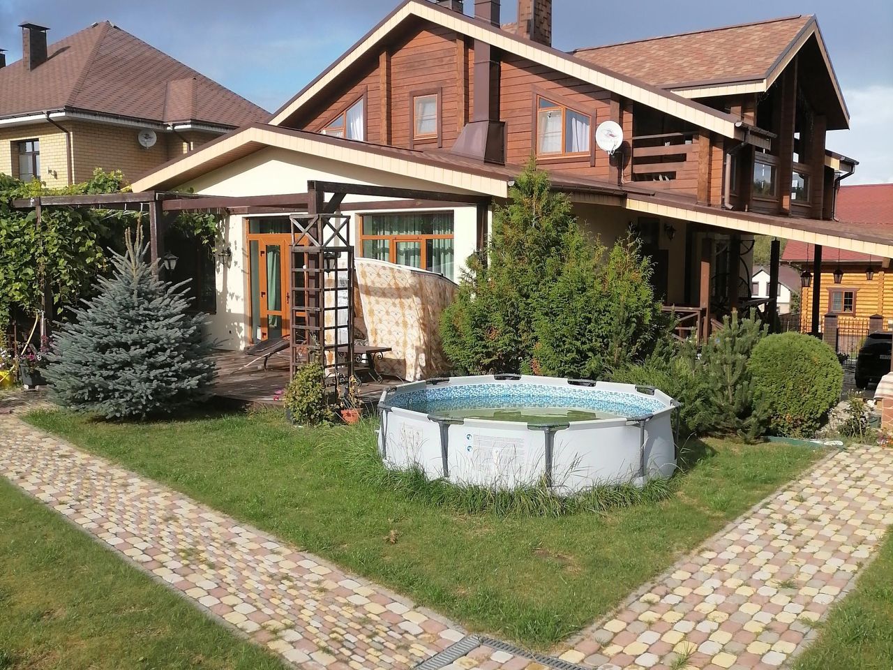 Коттеж шале в закрытом коттеджном поселке. На территории детская площадка, футбольное поле, рядом магазин. Участок 15 соток с зоной барбекю и верандой, баня 36 метров (оплачивается отдельно по договоренности). До Нижнего Новгорода 18 км. Трасса четырехполосная освещенная.
