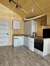 1 этаж: кухня гостиная + комната + санузел.