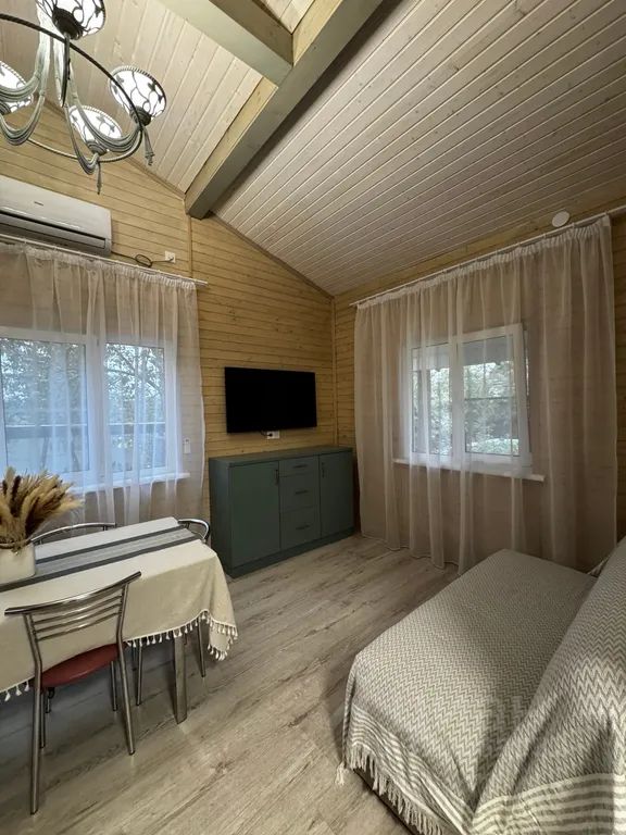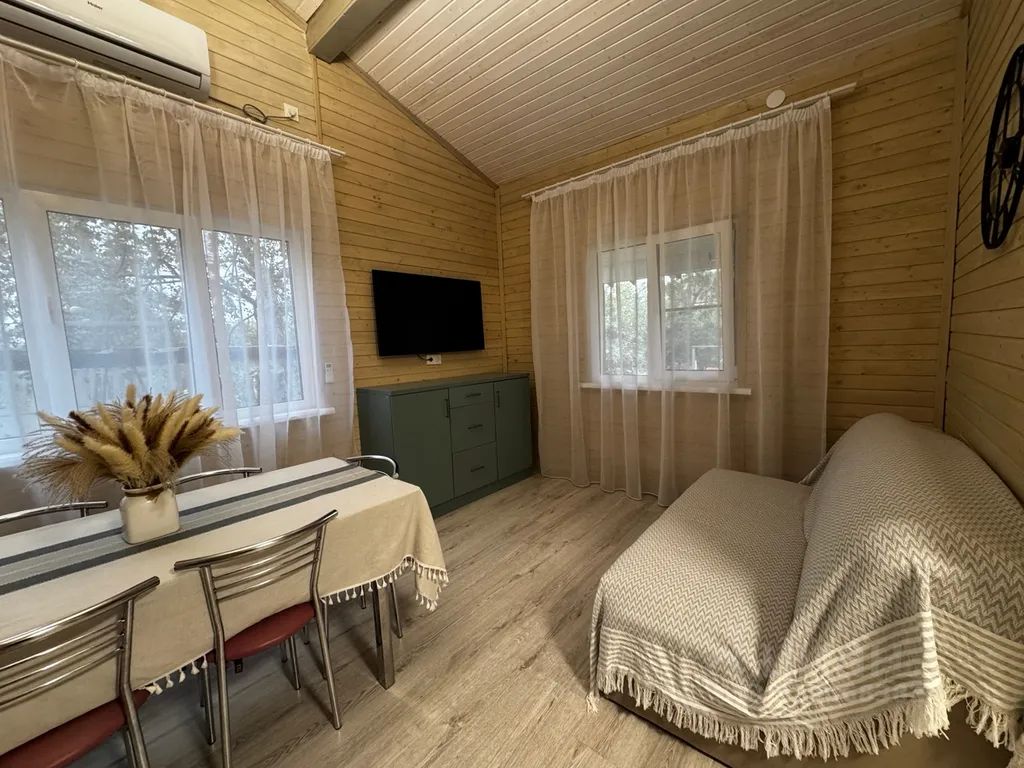 В доме: 2 изолированные спальни с двух спальными кроватями и ортопедическими матрасами, в каждой спальне дополнительный одноместный раскладывающийся диван, в кухне гостиной диван с двумя спальными местами. Кондиционер, туалетная комната с душевой кабиной, wi-fi, телевизор, колонка "Алиса", веранда, баня.