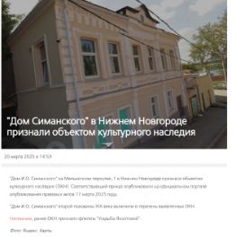 Выявленный ОКН Усадьба Симанского 2-я пол.XIX в.(1862г.) находится в стадии постановки на учет ОКН РФ см.19 фото.