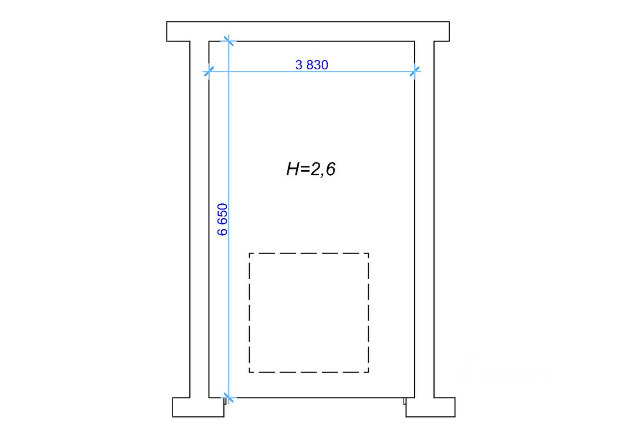Гараж просторный (ширина 3,83 м, длина 6,65 м), сухой.