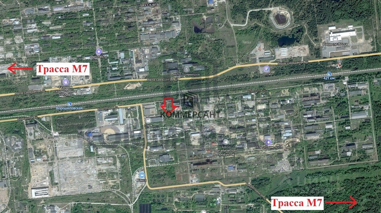 Данная площадка со всех сторон граничит с действующими предприятиями. Отличное месторасположение и удобная транспортная развязка с федеральной трассы М7.