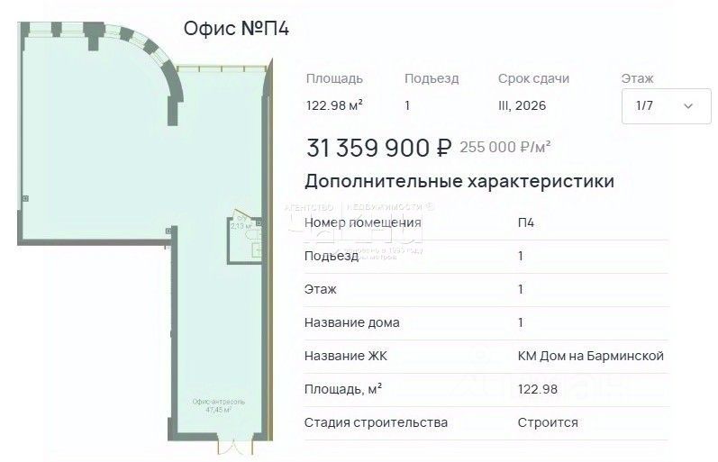 Агентство недвижимости ЧЕКНИ является официальным партнером застройщика. Бронируя офис (по цене застройщика) через нас, Вы абсолютно бесплатно получаете: консультацию по подбору коммерческой недвижимости под Ваши потребности и финансовые возможности, сопровождение до застройщика, дополнительные скидки! Звоните прямо сейчас, чтобы забронировать это уникальное предложение! Мы уверены, что этот офис станет Вашим ликвидным вложением!