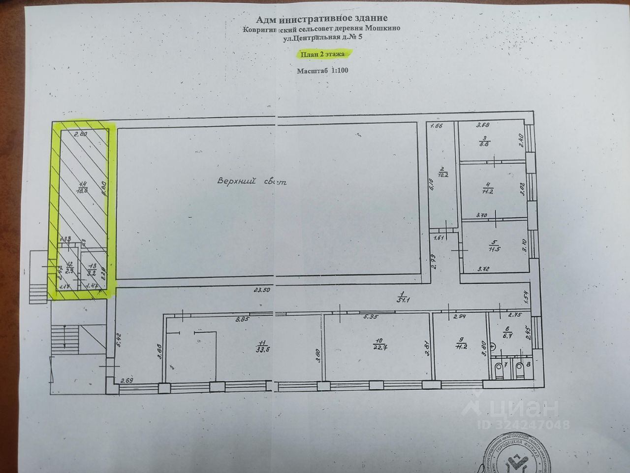 Нежилое помещение, количество этажей 2, кадастровый номер 52:15:0050227:131, площадь - 370,8 кв.м, по адресу: Нижегородская область, Городецкий район, д. Мошкино Ковригинского сельсовета, ул. Центральная, д. 5, П1