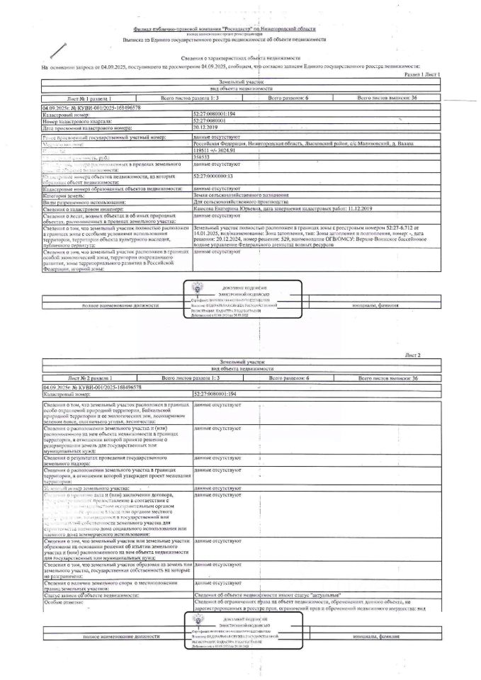 Земельный участок площадью 119511 +/- 3024,91 кв. м, кадастровый (или условный) номер 52:27:0080001:194, категория земель - земли сельскохозяйственного назначения, вид разрешенного использования для сельскохозяйственного производства. Местоположение: Нижегородская обл., Лысковский р-н, с/с Малиновский, д. Валава. Должник ООО "Андострой-НН"