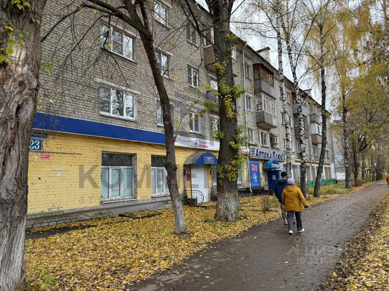 Отдельный вход с красной линии, место для рекламной вывески на фасаде.