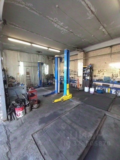 два подъемника,компрессор,верстак, пресс, высота 3,5 м, двое ворот, 10 квт, вода. Перед помещением большая разворотная площадка.