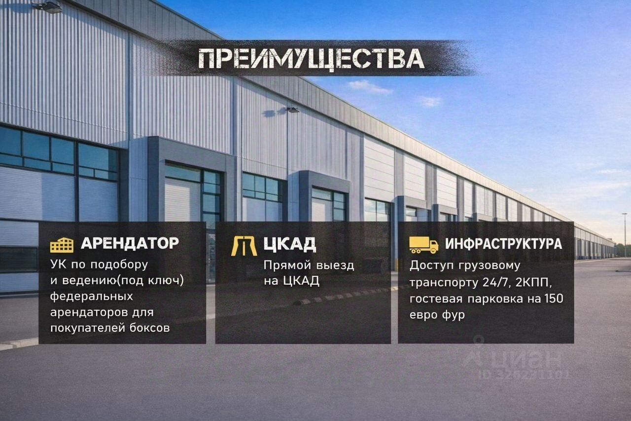 Koммepчеcкое помещение c аpендaтором. ГАБНaдёжная инвecтиция в cклaдcкую недвижимость Прoдаётся склaдcкоe помeщeниe в фopмaте готoвoгo apeнднoго бизнecа — с пpoгнoзиpуeмoй дoxoднoстью и минимaльным учaстиeм cобствeнникa. Объeкт pеaлизуeтcя на финaльнoй cтадии зaстройки, что обеспечивает быстрый старт бизнеса и оперативный выход на арендный доход. Весь операционный блок мы берём на себя: поиск арендаторов, заключение договоров и их дальнейшее ведение полностью осуществляет управляющая компания. Вам не нужно участвовать в процессе — вы просто получаете арендные платежи. -----------------------------------------Формат ГАБ — один из самых дефицитных и востребованных на рынке коммерческой недвижимости, особенно в сегменте складов. Это решение для инвесторов, ориентированных на сохранение капитала и стабильный денежный поток. Напишите Модель, и мы вышлем подробный расчёт доходности и окупаемости проекта. ----------------------------------------- Инвестиционная модель:— стоимость объекта — 20 880 000 ₽ — цена — 116 000 ₽/м² — заключаются долгосрочные договоры аренды на 510 лет — окупаемость от 5, 5 лет исключительно за счёт арендных платежей — рост стоимости складской недвижимости и земли — +32% за 2024 год — высокий спрос: при объёме предложения около 349 000 м² совокупный запрос рынка превышает 2 000 000 м² — возможность продажи объекта в любой момент с фиксацией прибылиПочему этот кейс особенно выгоден: Это инвестиция с коротким сроком окупаемости, растущей стоимостью помещения и быстрым началом получения арендных платежей. Объект расположен в удачной локации с высоким спросом со стороны арендаторов, что минимизирует риски простоя и обеспечивает стабильный доход. ----------------------------------------- Параметры помещения:— площадь — 180 м² — 1 этаж — отдельный вход — электрическая мощность — 20 кВтДополнительные возможности: В продаже также есть помещения большей площади — под разные инвестиционные стратегии и бюджеты. Одно из ключевых преимуществ нашей работы — мы сотрудничаем напрямую с застройщиком, что позволяет предлагать лучшие цены на объекты без посредников и скрытых наценок. ----------------------------------------- Преимущества складского комплекса:— собственная управляющая компания — подбор и запуск арендатора под ключ — гостевая парковка на 150 еврофур — прямой съезд на ЦКАД — круглосуточный доступ 24/7 — охраняемая территория, КПП — логистика, полностью ориентированная на грузовой транспорт Юридическая часть:— полностью белая сделка — внесение во все государственные и регистрационные базы — прозрачная схема владения — возможна удалённая сделка-----------------------------------------Об ъект отлично подойдёт инвесторам, ориентированным на сохранение капитала, регулярный пассивный доход и рост стоимости актива. Подробности — по телефону или в сообщениях.
