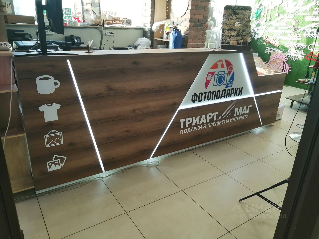 Также в продажу входят все остатки по материала и товарам (фоторамки, кружки, пакеты, сувениры...), гобо-проектор у входа в ТЦ, световые вывески (над входом в ТЦ и в витринах- неоновые).