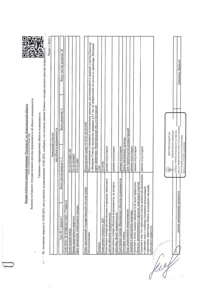 Земельный участок площадью 1540 кв. м, кадастровый (или условный) номер 52:26:0030003:387, категория земель - земли населенных пунктов, вид разрешенного использования для строительства автомастерской. Местоположение установлено относительно ориентира, расположенного в границах участка. Ориентир с. Федяково. Участок находится примерно в 0,1 км по направлению на восток от ориентира. Почтовый адрес ориентира: Нижегородская обл., Кстовский р-н. Должник Мусихина Е.В.