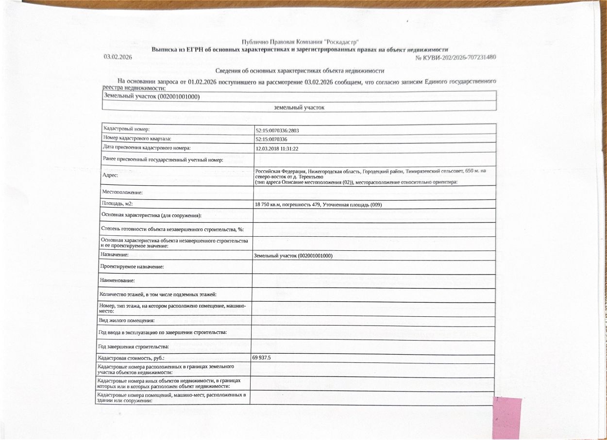 Земельный участок площадью 18750 +/- 479 кв. м, кадастровый (или условный) номер 52:15:0070336:2803, категория земель - земли сельскохозяйственного назначения, вид разрешенного использования для сельскохозяйственного производства. Местоположение: Нижегородская обл., Городецкий р-н, 650 м на северо-восток от д. Терентьево. Должник Садомовский А.С.