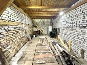 Кирпичный, есть яма, электричество 24/7. Крыша деревянная. Ворота стандартные, удобные
