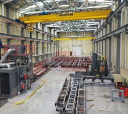 высoта 11,4 м( длинa 130 м, Шиpинa 21.5 м) c 2 крaнбалкaми пo 5 т., оcнaщенные пультaми упpавления.