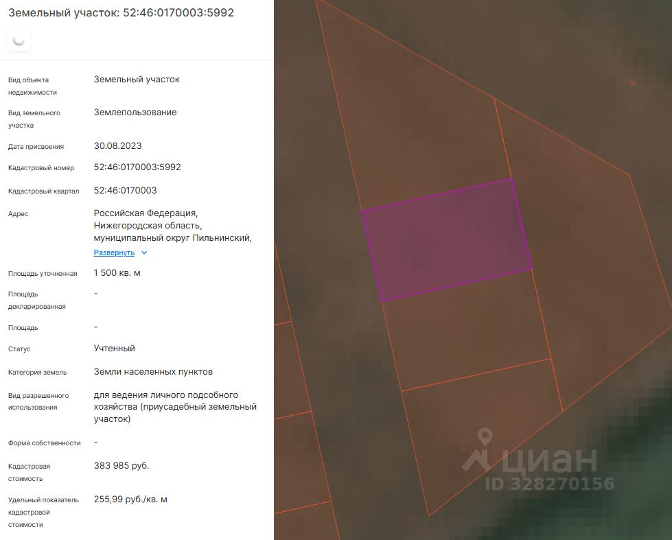 Адрес: Российская Федерация, Нижегородская область, муниципальный округ Пильнинский, село Красная Горка, улица Мусина, земельный участок 7, с кадастровым номером: 52:46:0170003:5992, общей площадью 1500+/-14 кв. м, категория земель: земли населенных пунктов, вид разрешенного использования: для ведения личного подсобного хозяйства (приусадебный земельный участок)