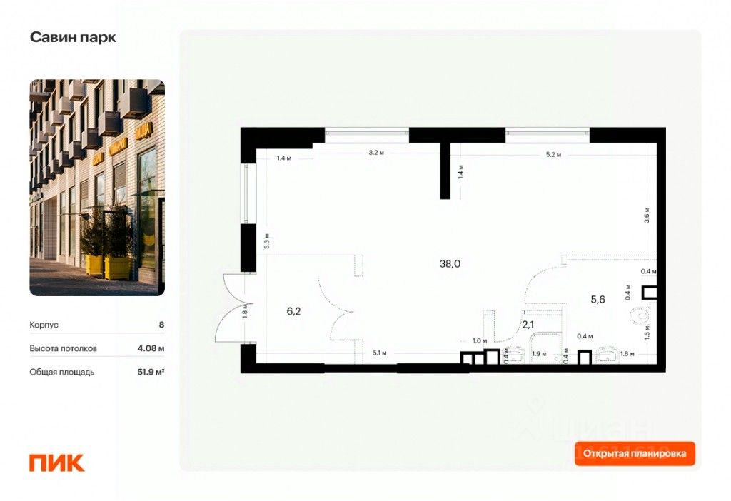 - Открытая планировка, возможно объединить несколько помещений