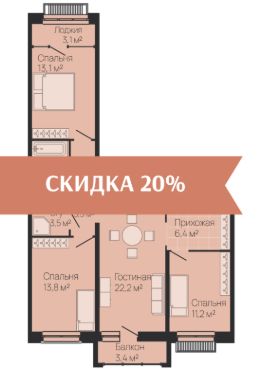 Площадь кухни22,2 м²