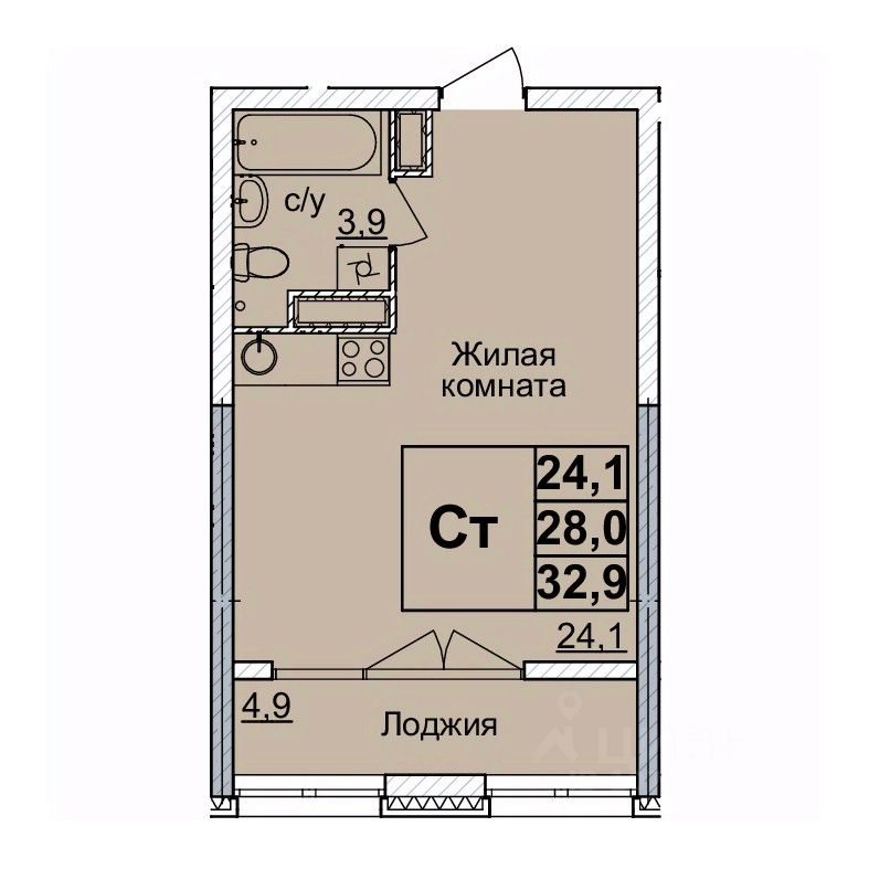 Общая площадь32 м²