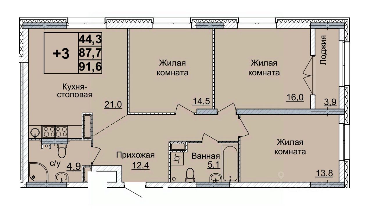 Общая площадь91 м²