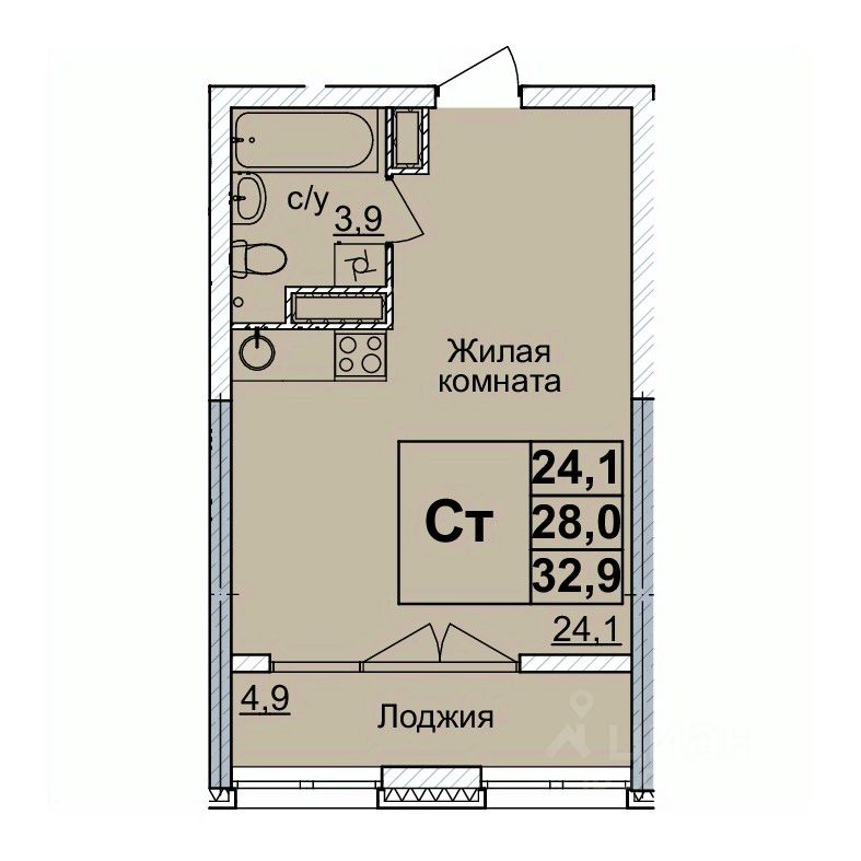 Общая площадь33 м²