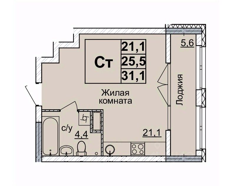 Общая площадь30 м²