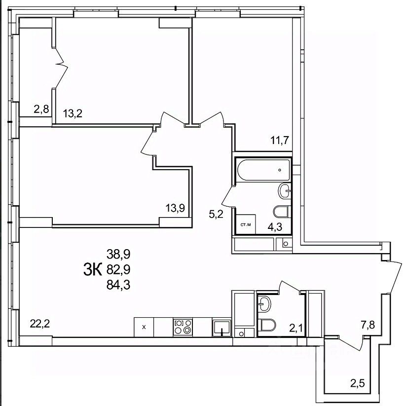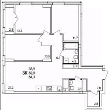 Продаётся 3-комнатная квартира в строящемся доме (50), срок сдачи: II-кв. 2026, общей площадью 84.3 кв.м., на 19 этаже. Расположение, транспортная доступность