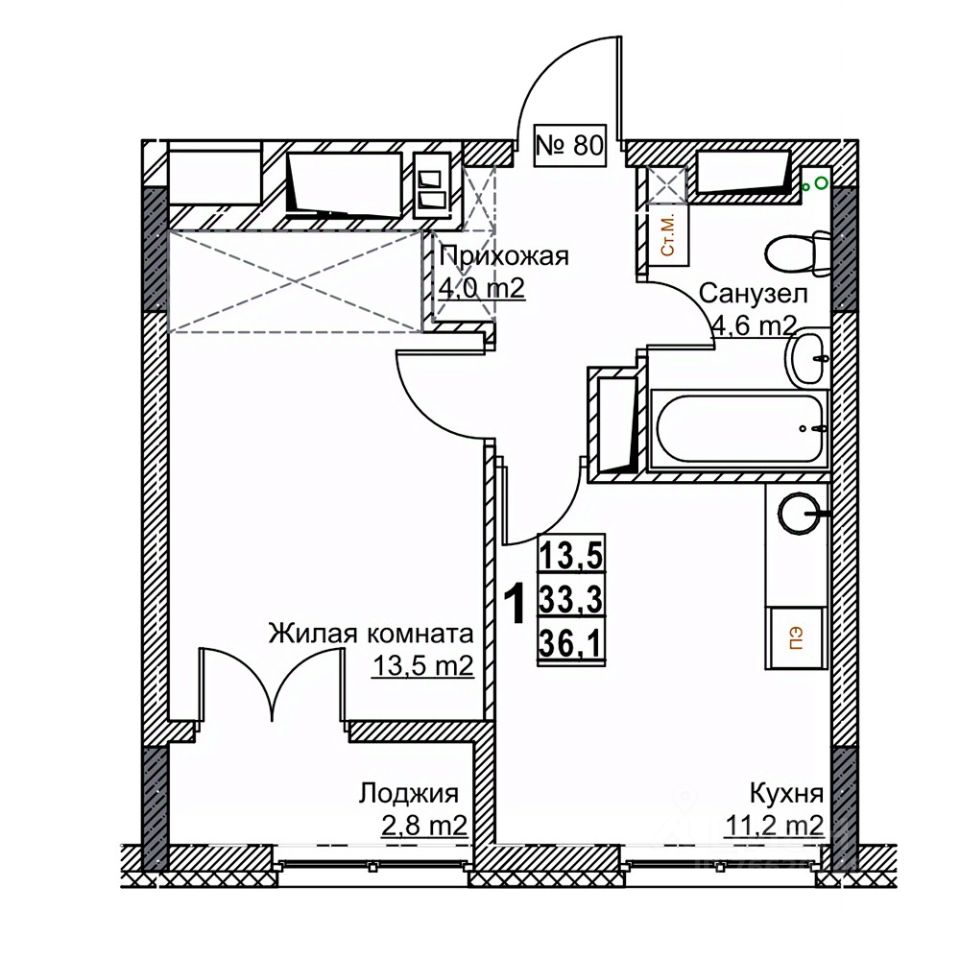 Общая площадь36,1 м²