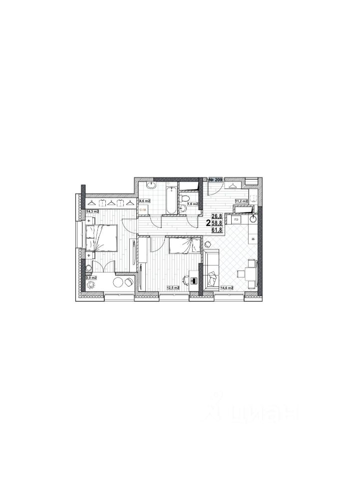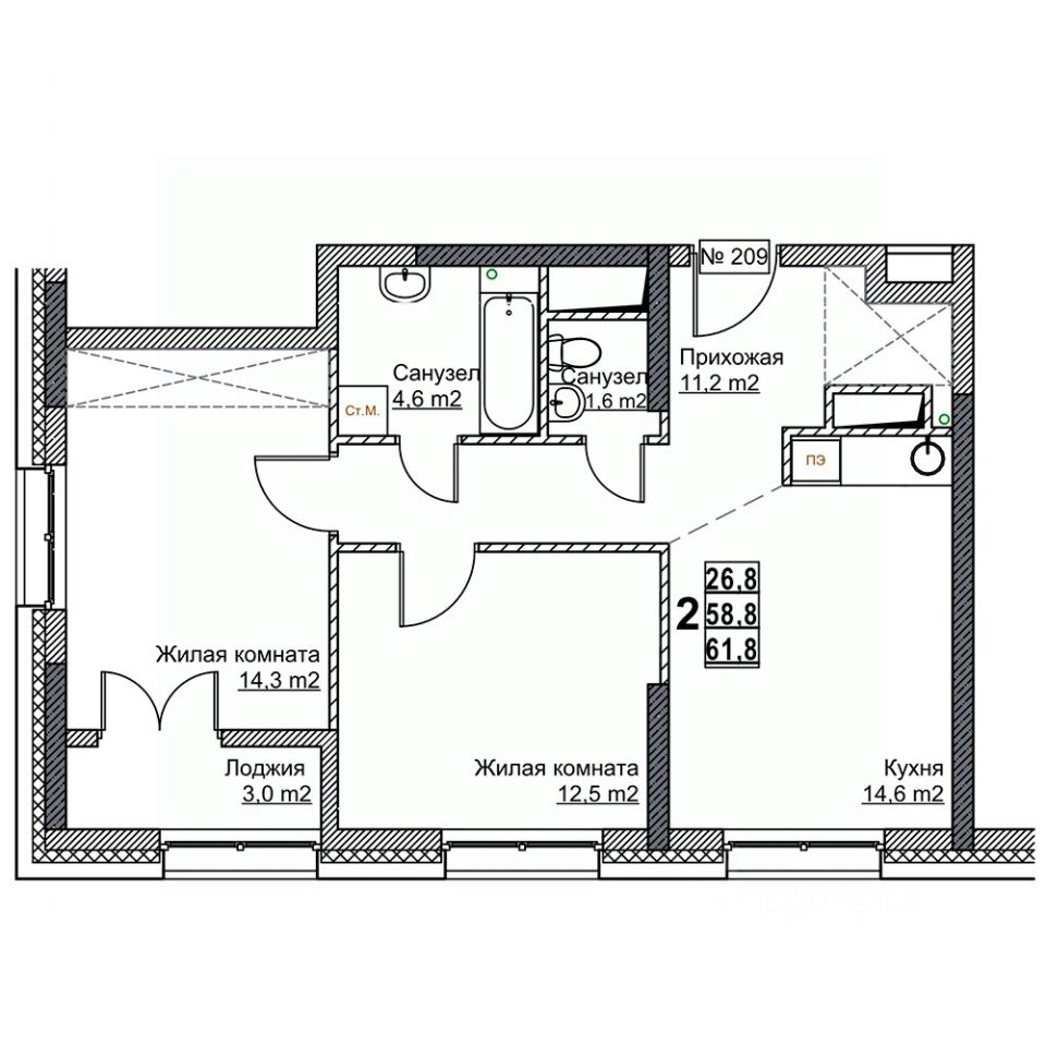 Жилая площадь26,8 м²