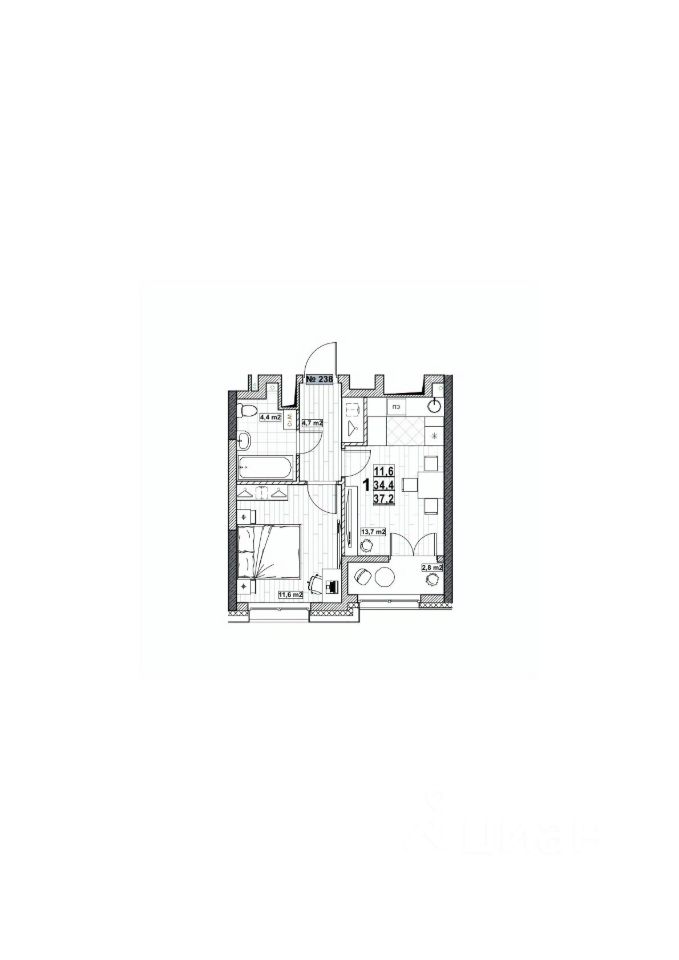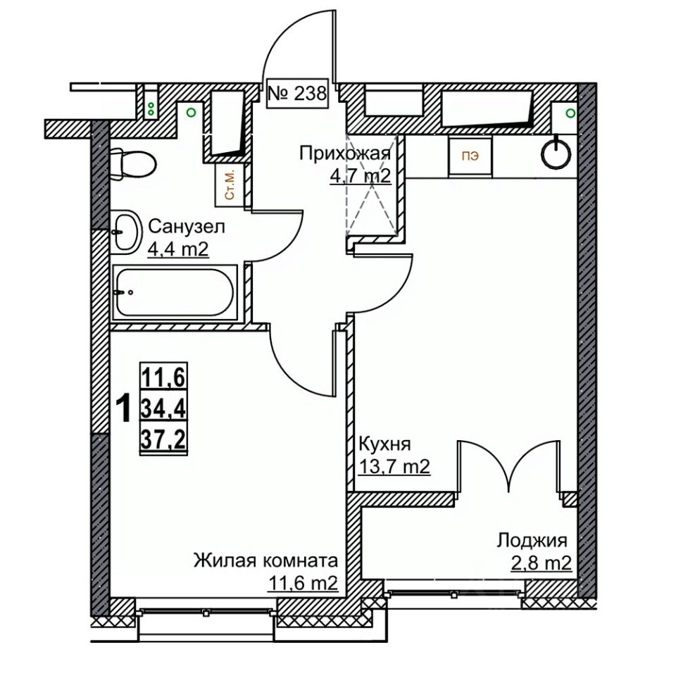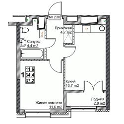 Общая площадь37,2 м²