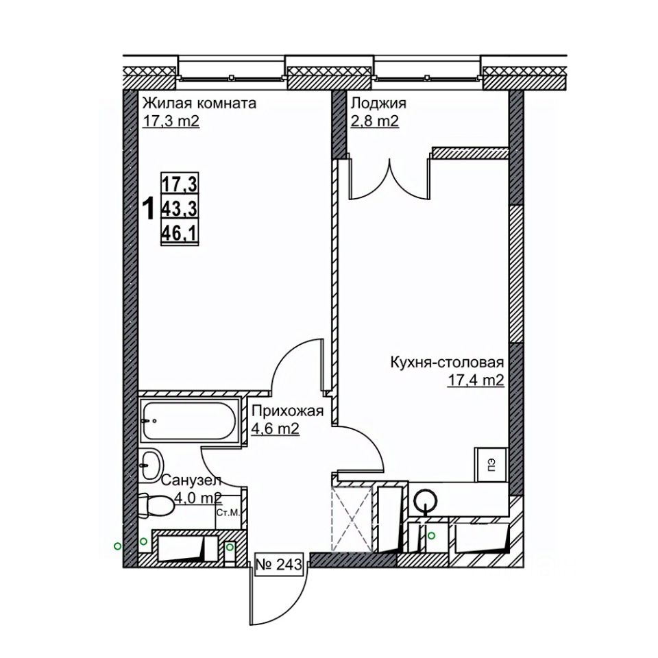 Жилая площадь17,3 м²
