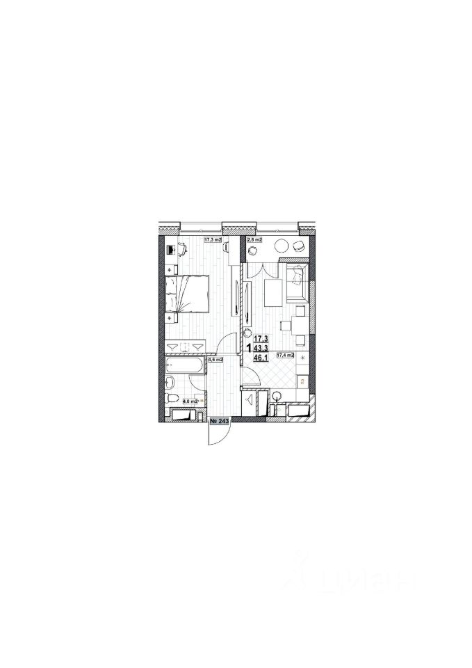 Общая площадь46,1 м²