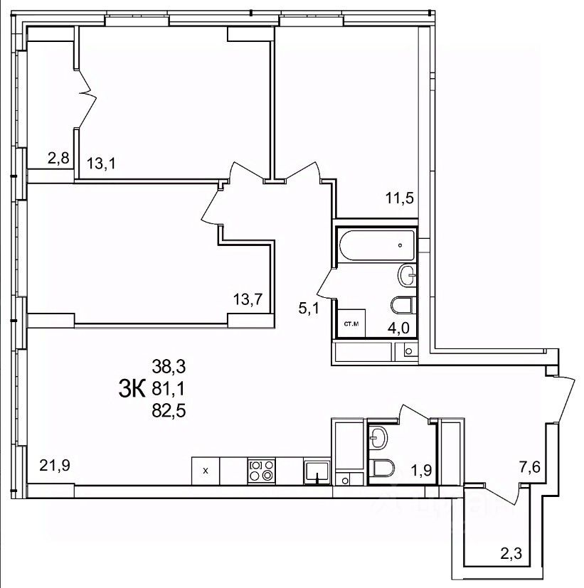 Продаётся 3-комнатная квартира в строящемся доме (51), срок сдачи: II-кв. 2026, общей площадью 82.5 кв.м., на 23 этаже. Расположение, транспортная доступность