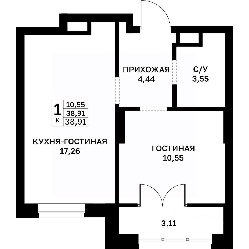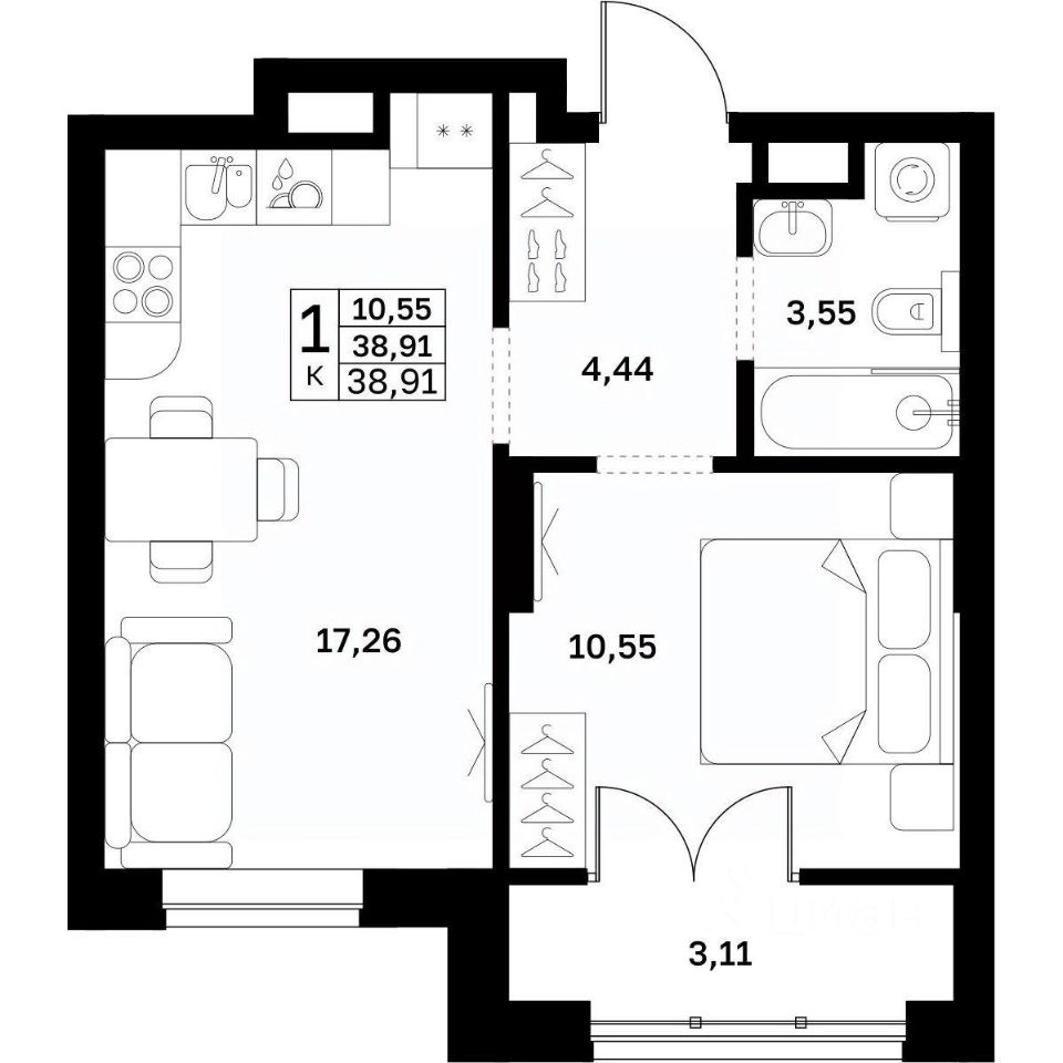 38,91 м²