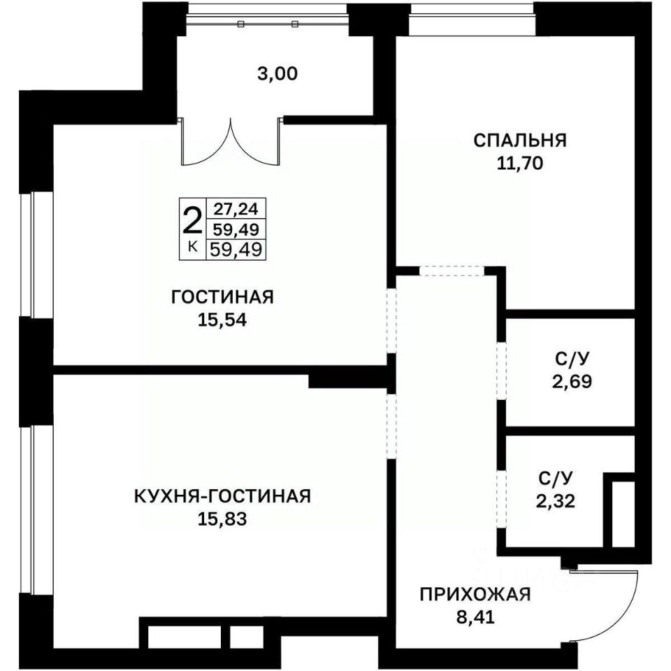59,49 м²